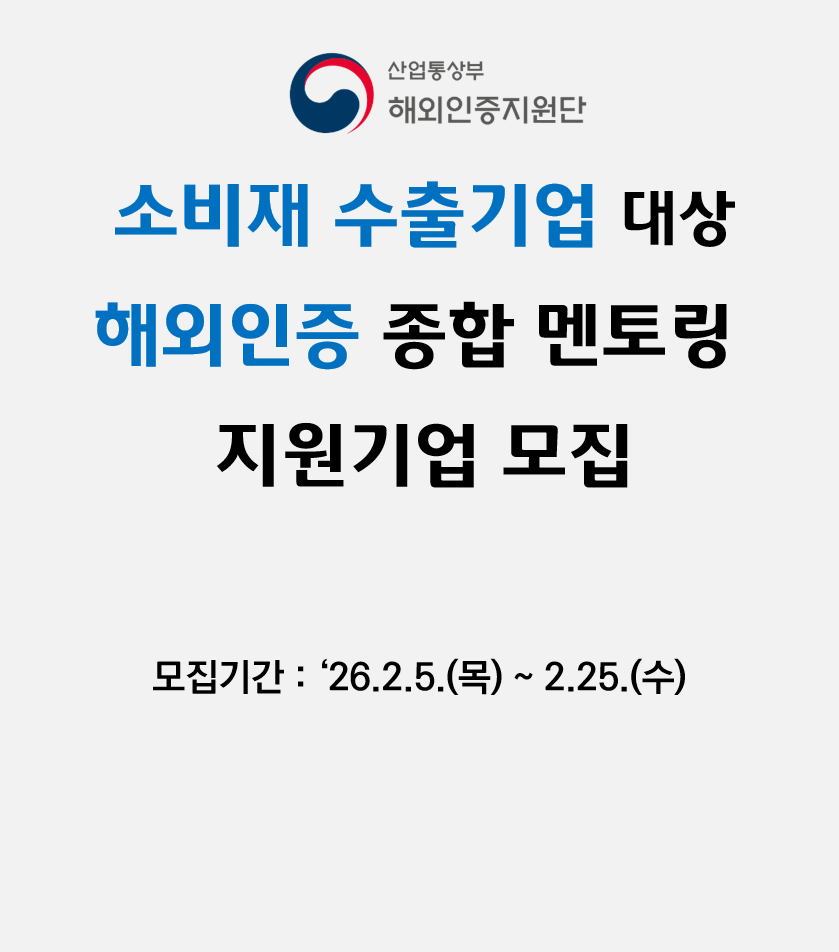 「2026년 해외인증 종합 멘토링 지원사업」 제1차 참여기업을 모집합니다.