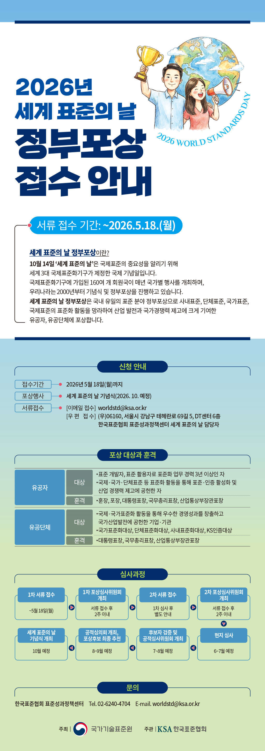 2026년 세계 표준의 날 정부포상의 접수가 시작되었습니다.